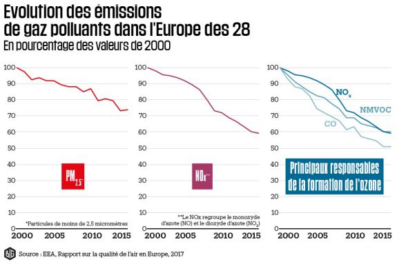 Allemagne, France, Espagne, Italie, Royaume-Uni, Roumanie, Hongrie, République tchèque, Slovaquie. Cette liste aux airs de tirage au sort d’une compétition sportive est celle des pays accusés par la Commission européenne d’avoir enfreint la directive sur la pollution de l’air passée en 2008. En cause : les dépassements répétés des limites sur la concentration de gaz dangereux pour la santé, comme les particules fines, le dioxyde d’azote (NO2) ou l’ozone. L’enjeu est crucial. La Commission estime que, en 2014 dans l’UE, plus de 487 000 personnes sont mortes prématurément à cause de la pollution de l’air...